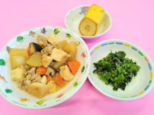 1月23日(木) 2025.1.24 最終更新日時 : 2025.1.24 小鳩保育園 給食メニュー ぶりの照焼⭐️ほうれん草の三色鰹和え⭐️味噌汁 おやつ 米粉のココアケーキ⭐️りんごジュース トップページへ戻る
